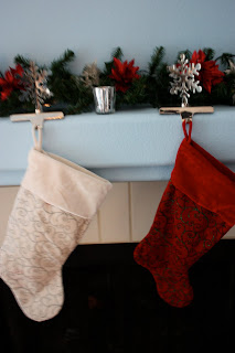 A wide shot of the mantle for you to see: the Stockings are from the Santa's Best Collection at Walgreens.